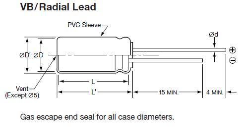 KMF200VB10M10X16 absolute maximum ratings: (1)Capacitance: 6800 uF; (2)Tolerance: 20 %; (3)Voltage Rating: 25 Volts; (4)Operating Temperature Range: - 55 C to + 105℃; (5)Termination Style: Radial; (6)Dimensions: 18 mm Dia. x 40 mmL; (7) Packaging: Bulk ; (8)Lead Spacing: 7.5 mm.